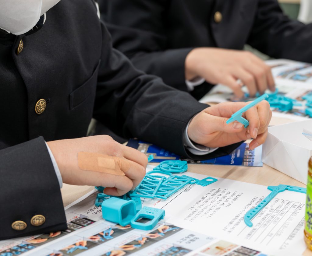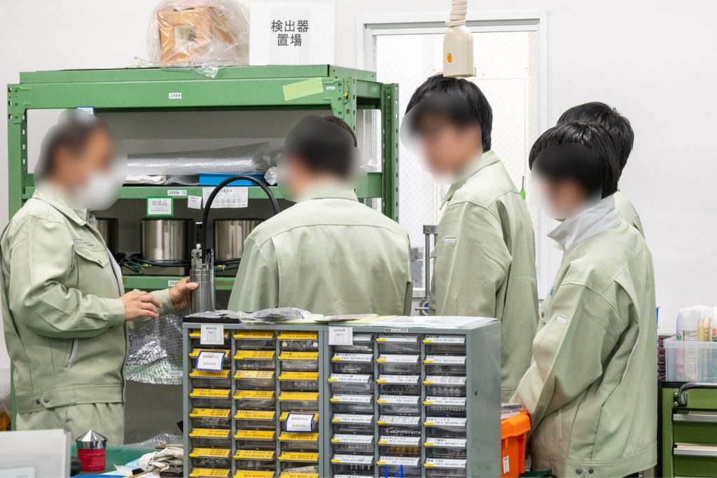 生徒さんたちには、順番に工場見学もしてもらって、実際の製品や、製品を作るところを見てもらいました。