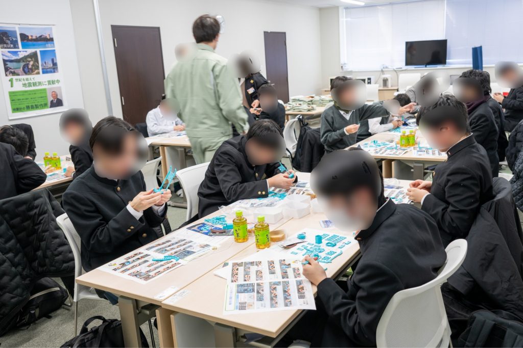 2025年夏に社員の家族向けに簡易地震計の組み立て体験を行いましたが、そのブログ記事を見た地学部顧問の先生からご連絡をいただき、今回の体験会開催の運びとなりました。